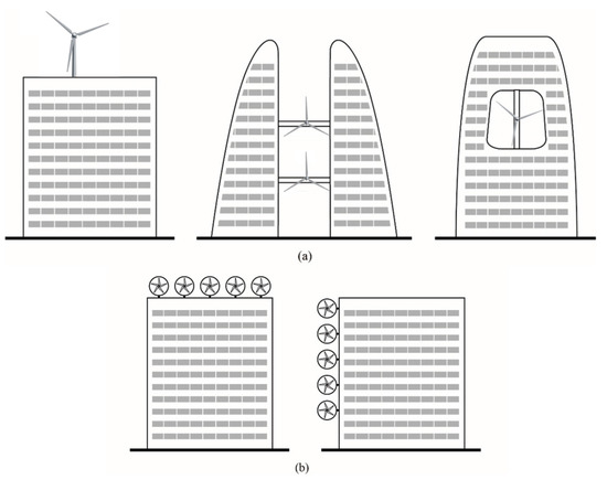Building integration of (a) large scale WTs and (b) small scale WTs.