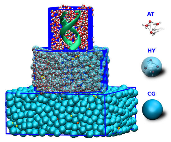 - Matysiak, S.; Clementi, C.; Praprotnik, M.; Kremer, K.; Delle Site, L. Modeling diffusive dynamics in adaptive resolution simulation of liquid water. J. Chem. Phys. 2008, 128, 024503. [Google Scholar] [CrossRef] [PubMed]
