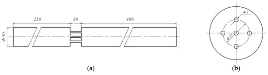 Figure 1a. The pipe diameter is 50 mm, the entrance section length is 250 mm, the export section length is 400 mm, the perforated plate thickness is 30 mm and the diameter of the holes is 4 mm. In addition, the arrangement of the five holes is depicted in
