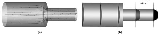 Figure 8 compares velocity profiles upstream and downstream of the contraction with other published literature. Durst et al. [] conducted an experimental study of laminar flow in a pipe with a sudden contraction of  and  (slightly different Reynolds number from this work). The experimental investigations were carried out using LDA techniques in both regions, upstream and downstream. Sanchez [] investigated flow along the upstream flow region of a sudden contraction having  and  through experimental techniques using PIV-2D methods.