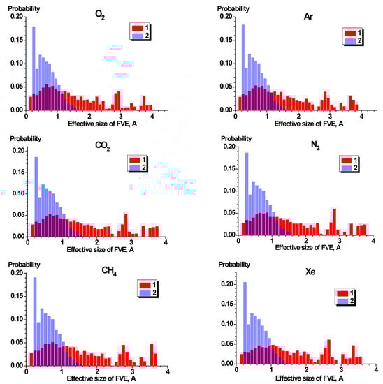 - Hofmann, D.; Entrialgo-Castano, M.; Lerbret, A.; Heuchel, M.; Yampolskii, Y. Molecular Modeling Investigation of Free Volume Distributions in Stiff Chain Polymers with Conventional and Ultrahigh Free Volume: Comparison between Molecular Modeling and Positron Lifetime Studies. Macromolecules 2003, 36, 8528–8538. [Google Scholar] [CrossRef]