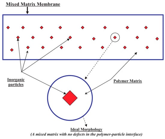 Unlike polymeric materials, inorganic materials allow achieving narrow pore size distribution, hence they can provide an efficient solution to overcome the permeability/selectivity trade-off. In 1996, Koros and co-workers showed that the separation performance of carbon molecular sieve membranes was above the Robeson’s upper bound []. Although the performance was improved, preparing large surface area, defect-free, ultrathin membranes of carbon molecular sieves and other inorganic materials are highly challenging. To overcome this limitation, a popular approach is to disperse these materials into a continuous polymeric matrix and resulting in a composite membrane structure, which is called a mixed matrix membrane (MMM). In designing MMM, compatibility between the filler and polymer, shape and size of the filler and homogeneous distribution of the filler should be carefully considered.