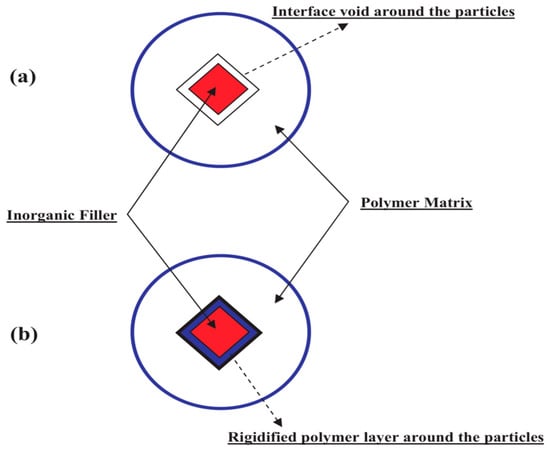 Schematic diagram of non-ideal MMM morphologies. Interface void (a) and rigidified polymer layer (b) in the polymer–particles interface. Reproduced with permission from Ref. [] Copyright 2010 Elsevier.