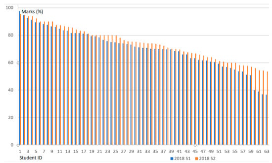 - The previous cohort of students (S1) could not score the ‘Distinction’ grade (70% and above) as shown in Figure 5, while many students in the current cohort (S2) scored this ‘Distinction’ grade