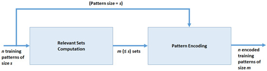 An immediate amendment of the previous schema consists in normalizing the features obtained as above by dividing each feature by , k being the length in bits of the binary representation of features in the original dataset, such that all new features are bounded within the interval . The more evident and usually positive effect of normalizing a dataset, especially when distance-based classifiers are being used, is mainly guaranteeing that no feature is more relevant than the others just because of its scale. In our approach, this effect can be appreciated (i) as an equalizer between the transformed pattern components, whose scale, and therefore relative weight, depends on the number of elements in the relevant set from which it derives; and (ii) as a partial equalizer between each element in a relevant set, whose relative weight depends on its position within the bit string obtained by packing the values of all elements in the set. Finally, input data normalization is sometimes a requirement for certain kinds of classifiers.