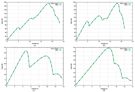 Furthermore, in Figure 5, it is observed that the network suitably maps each of the functions. In some inflection points the network rounds a little more because the performance of a module or array of PV modules is simulated, the x-axis represents the voltage (volts) and the y-axis the power (watts).