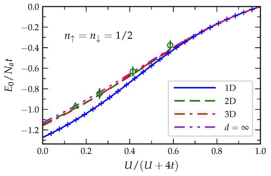 - Saubanère, M.; Pastor, G.M. Scaling and Transferability of the Interaction-Energy Functional of the Inhomogeneous Hubbard Model. Phys. Rev. B 2009, 79, 235101. [Google Scholar] [CrossRef]