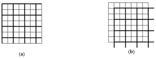 Figure 2. Even (a) and odd (b) partitioning of the lattice. - for a pair of two adjacent cells, the interaction energy (which depends on cell types) is calculated;