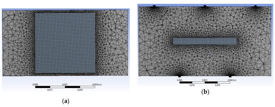 XZ (a) and YZ (b) cross sections of the initial mesh.