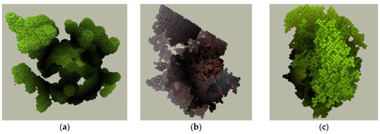 The overlapping spheres model [25] can be described as follows: the volume is filled with slightly overlapping spheres, then the spheres are removed until the desired porosity is obtained and links between all spheres exist. The diffusion limited cluster aggregation model [26] is a well-known and widely used model. The particles following Brownian motion are aggregated into set of clusters that eventually encounter each other forming resulting clusters. Reaction limited aggregation with multiple centers is a rather new model that is based on reaction limited aggregation [27] but introduces multiple seeds or aggregation centers. This model provides an opportunity to take into account different processes occurring between particles, but this leads to high computational complexity. Thus, this model is very flexible, meaning that it can be adopted according to the needs. The ballistic particle–cluster aggregation model [28] operates with particles that follow straight line trajectories between the starting point and the position of the seed. The cluster that is being formed in this model is filled out very evenly, being nearly disk-shaped. Random Walker is a general-purpose algorithm that describes the random movement of single particles. When multiple particles are added to the volume, their paths form a structure full of fiber-like objects. It is also possible to use this model for particle-containing materials.