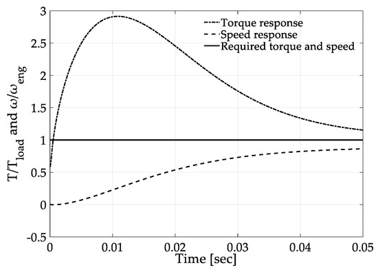 Multidisc wet friction clutches have been used widely in automotive transmission systems since the beginning of the 21st century due to their efficiency and flexible operation regarding torque and motion transmission during gearshift. The major difference from their single-disc dry friction counterparts is the use of hydraulic fluid, which is responsible for the hydrodynamic transmission of the clutch. During hydrodynamic transmission, the fluid is subjected to a torsional Couette-type flow, therefore, applying viscous shear stresses on the surface of the driven discs and consequently enabling the gradual increase or decrease of the torque and speed to the values required by the clutch output shaft in acceleration and deceleration situations, respectively. The engagement pressure is applied onto the first from the series of discs (clutch-pack) resulting in squeezing-out action of the fluid between discs. As soon as the fluid has been squeezed out of the gap, the discs come into contact and additional shear stresses are developed due to asperity contact (mixed or dry lubrication). This procedure describes briefly the engagement phase of a wet friction clutch that takes place during gearshift [1,2]. In a similar way, when the clutch is to be disengaged, the compressive force needed for the engagement is lifted and an internal flow is developed, usually from the inner radius of the discs forcing them to assume their normal open position with the help of springs. The main design goal for both transitional states is the minimization of the clutching time (in the order of hundredths of a second) along with achieving smooth and effective torque-speed transmission. An ideal such transition is qualitatively illustrated in Figure 1.