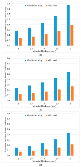 It can be noted (Figure 14 and Figure 15) that when using aluminum alloy with thickness of 2.5 mm as construction material the maximum SEQV value was higher than the yield stress in LC6.2. On the other hand, when using mild steel with thickness of 2.0 mm there was no yield in any loading case.