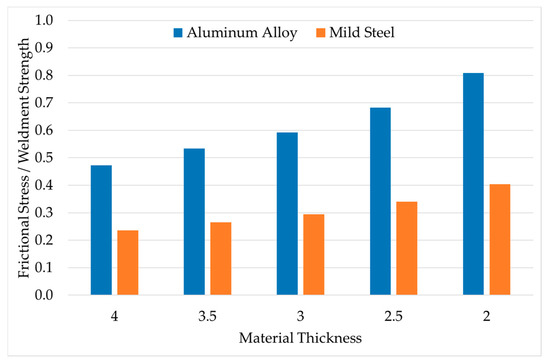 In Figure 16, the ratio of the highest stress value on the weldments to the weldment strength (Table 3) is provided, for the most dangerous loading case, which was LC6 for the second compartment. The weldment strength was not reached for any thickness or material.