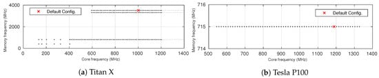 - Fan, K.; Cosenza, B.; Juurlink, B.H.H. Predictable GPUs Frequency Scaling for Energy and Performance. In Proceedings of the 48th International Conference on Parallel Processing, ICPP, Kyoto, Japan, 5–8 August 2019; pp. 52:1–52:10. [Google Scholar]