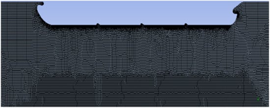 At the no-lubrication analysis, the meshing stopped at 33,280 cells, whereas the second analysis stopped at 38,862 cells. The injectors operate as air-velocity inlets and create small air cavities or bubbles, which tend to create a bubble mattress inside the boundary layer of the hull and simultaneously reduce the hull’s skin friction coefficient.