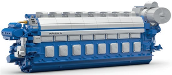 - Wartsila-46df. Available online: https://www.wartsila.com/marine/build/engines-and-generating-sets/dual-fuel-engines/wartsila-46df (accessed on 23 April 2020).
