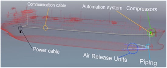 Figure 10 presents the main parts, that synthesize the total air lubrication system. The operation is controlled in the automation room, where the engineer can set the variables and check the system in real time.