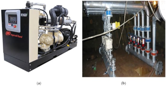(a) Ingersoll Rand Suitable compressor; (b) Piping system.