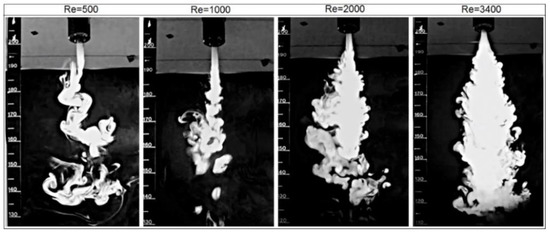 - Ricou, F.P.; Spalding, D.B. Measurement of entrainment by axisymmetric turbulent. J. Fluid Mech. 1961, 11, 21–31. [Google Scholar]