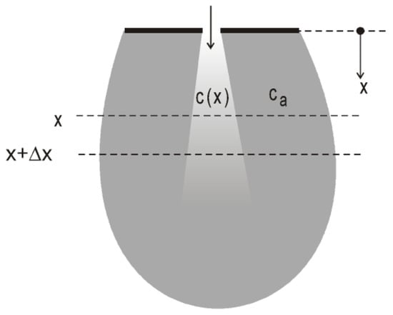 Therefore, the change in contaminant concentration in the jet flow is determined by the following relationship,