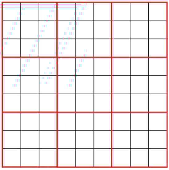 Each cell represents a certain number of reagent molecules. Cells of the automata are grouped by nine (