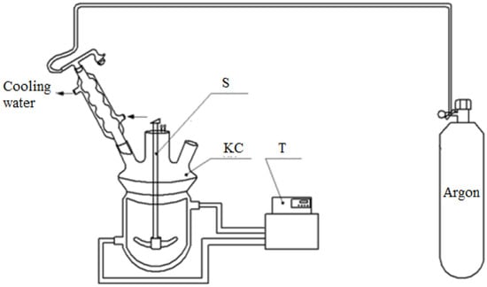Figure 4), which is a glass reactor with a jacket and a mechanical stirrer, equipped with a reflux condenser, a sampling dispenser, and a thermometer. A circulation thermostat is connected to the jacket of the reactor to create isothermal conditions in the reactor.