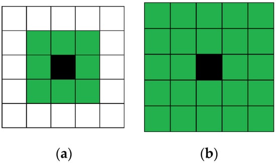 Figure 6). Different order allows the distance which a substance can pass during one-time step to be adjusted. Automata is asynchronous, so cells move one after another. Each cell is chosen randomly, but the cell that has already moved during the current time step is static.