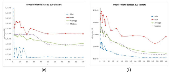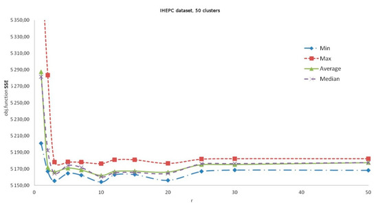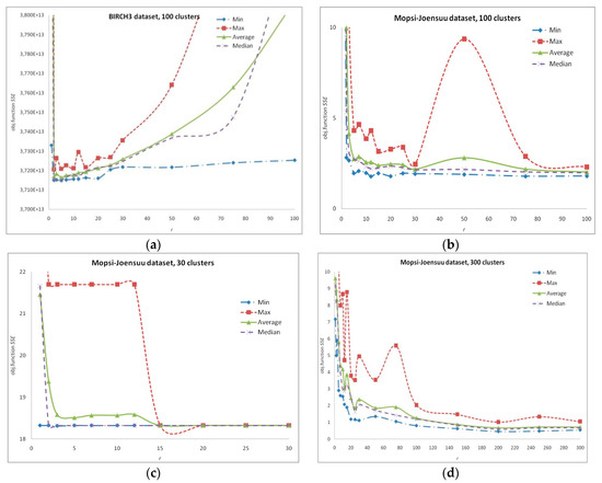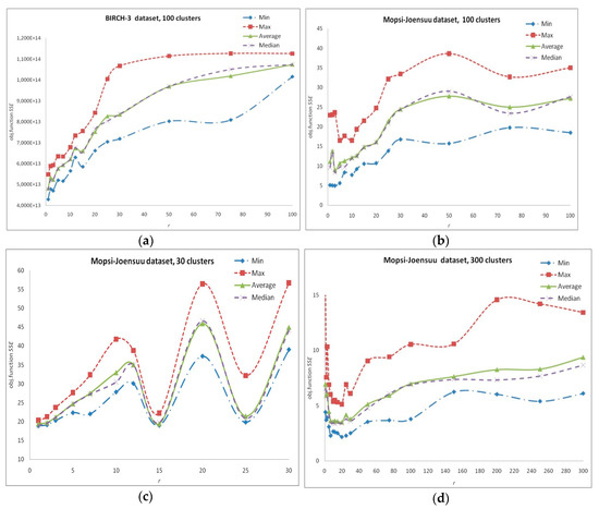 As can be seen on Figure 1, for various problems from the clustering benchmark repository [108,109], the best results are achieved with different values of r, although in general, such a search provides better results in comparison with Lloyd’s procedure. Our computational experiments are described in detail in Section 2.5, Section 2.6 and Section 2.7.