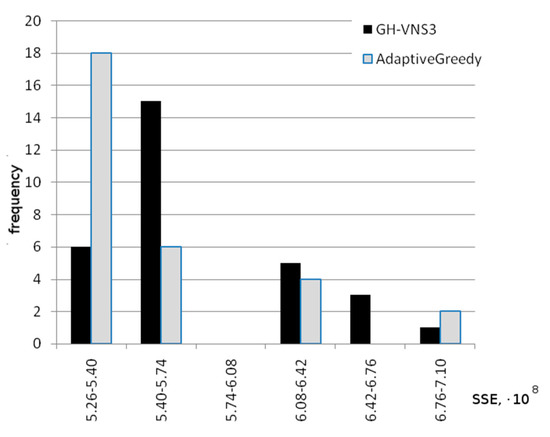 Agglomerative procedures, despite their relatively high computational complexity, can be successfully integrated into more complex search schemes. They can be used as a part of the crossover operator of genetic algorithms [46,88] and as a part of the VNS algorithms. Moreover, such algorithms are a compromise between the solution accuracy and time costs. In this article, by accuracy, we mean exclusively the ability of the algorithm (solver) to obtain the minimum values of the objective function (1).
