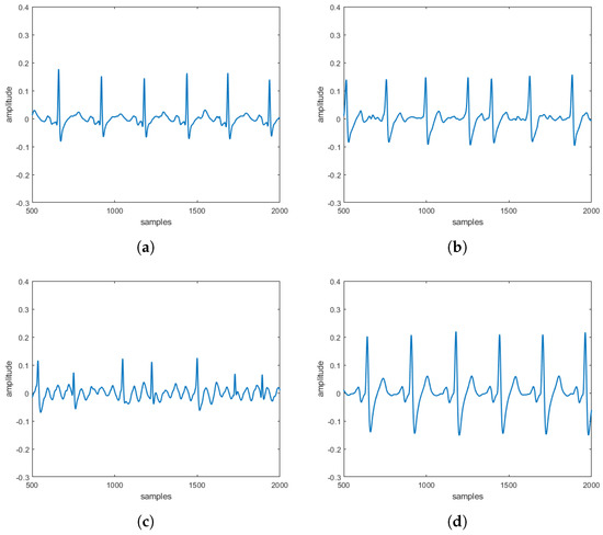 - Moody, G.B.; Mark, R.G. The impact of the MIT-BIH Arrhythmia Database. IEEE Eng. Med. Biol. 2001, 20, 45–50. [Google Scholar]