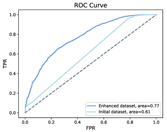 As shown in Table 2, on both the initial and enhanced structured datasets, the MLP method demonstrated higher accuracy than the XGBoost method. For both datasets, the accuracy using MLP is 98%. However, the ROC curve (Figure 8) indicates that the model shows a better classification ability on the enhanced structured dataset.