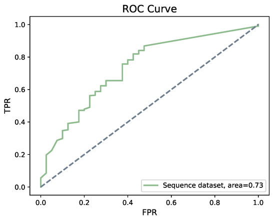 Taking sequence data into account, we obtained 93% accuracy and the area under the ROC curve is 0.73, as shown in Figure 9. Among all the models we built, the AUC score was highest when using a Bi-LSTM on the sequence data.