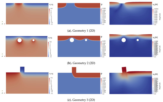 - Na, S.; Sun, W. Computational thermo-hydro-mechanics for multiphase freezing and thawing porous media in the finite deformation range. Comput. Methods Appl. Mech. Eng. 2017, 318, 667–700. [Google Scholar] [CrossRef]