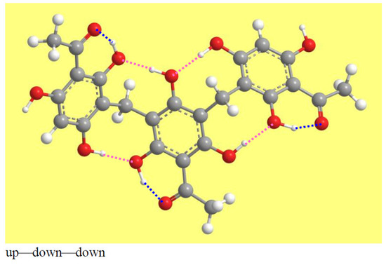 - Mammino, L. Intramolecular hydrogen bonding patterns, conformational preferences and molecular properties of dimeric acylphloroglucinols: An ab initio and DFT study. J. Mol. Struct. 2019, 1176, 488–500. [Google Scholar] [CrossRef]