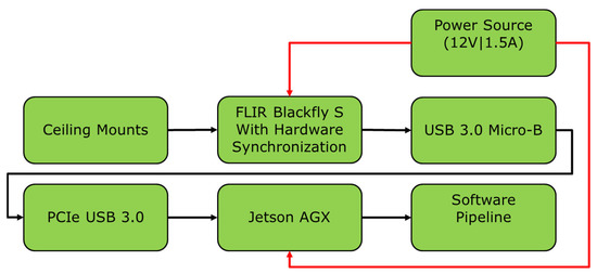 | Pull-Up Resistor (kΩ) | Number of Cameras | Current Steady State (mA) | Current Active (mA) | Current Active (mA/Camera) | Trigger Success |