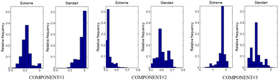 Histograms of COMPONENT#1 ; COMPONENT#2 ; and COMPONENT#3 .