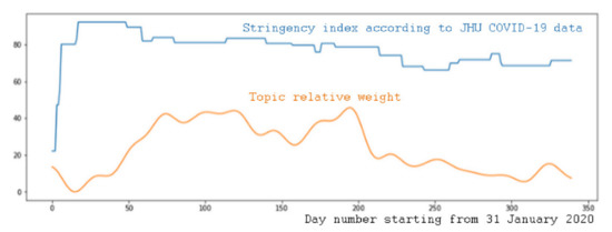 Public reactions to the implemented measures, assessed via the analysis of large volumes of documents, permits the adjustment of the restrictions imposed by government agencies. In particular, the positive attitudes of the population to the measures of the governments of South Korea [30] and Singapore [31] were revealed. There is some evidence of increasing confidence in traditional media in the United States [32] and in India [33]. During the pandemic, the amount of misinformation and rumors circulating on social media increased significantly; some of them could be detected automatically [34].