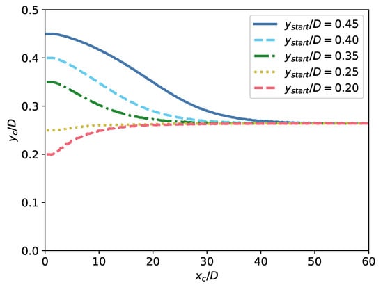 The second case simulates the tubular pinch effect first described by Segré and Silberberg [46]. They found that a neutrally buoyant particle in a tube flow equilibrates at a position between the tube’s center and its wall and that the results for single particles can be extended to mixtures by linear combination [47]. Later, Tachibana et al. [48] found that the equilibrium position depends on the ratio of sphere diameter to tube diameter, which should be larger than for the effect to be clearly visible. Karnis et al. [49] studied further the influence of the Reynolds number and the distance between two spheres on this effect.