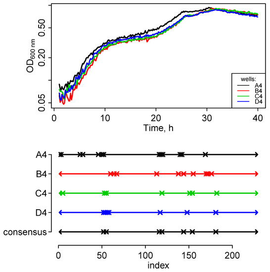 Consensus formation is also of use to aggregate data from biological replicates. As an example, we showed that consensus segmentations of growth curves can be used to robustly determine distinct growth phases.