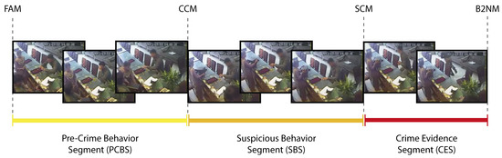 - Pre-Crime Behavior Segment (PCBS). The PCBS is the video segment between the FAM and the CCM. This segment has the information needed to study how people behave before committing a crime, even acting suspiciously. Most human observers will fail to predict that a crime is about to occur by only watching the PCBS.