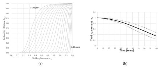 Consequently, the constructed curves describe the probability o the studied system not being able to guarantee, at any instant t, an ultimate bending moment greater than or equal to .