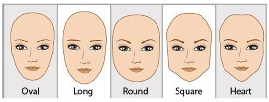 - Derrick, J. Is Your Face Round, Square, Long, Heart or Oval Shaped? Available online: https://www.byrdie.com/is-your-face-round-square-long-heart-or-oval-shaped-345761 (accessed on 1 June 2019).
