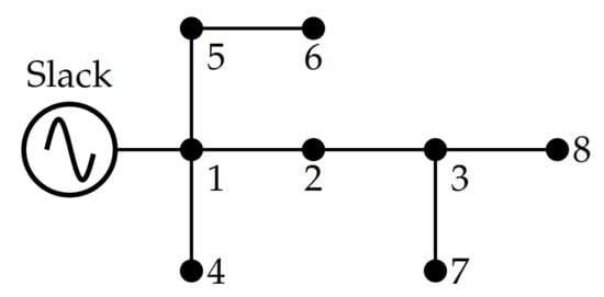 Single-line diagram of the 8-bus test feeder.
