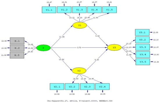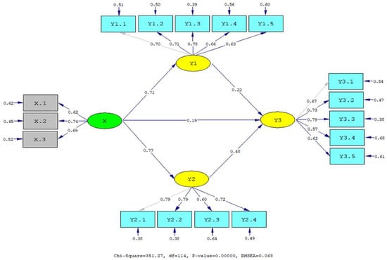 The measurement model estimate—by confirmatory factor analysis—is presented in Table 3. The factors’ loading values of all indicators and items equal ≥.3 (), indicating validity. This means that all indicators and items—as manifested variables—can measure all research variables as latent variables. Meanwhile, reliability was determined based on the construct reliability (CR) and variance extracted (VE) values. The CR values of all variables are greater than .70, and the VE values of all variables are greater than .50, indicating a good reliability and an acceptable convergence ().