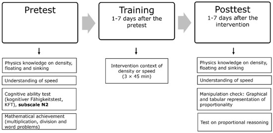 The tests were presented to both groups before and after the proportional reasoning training. Thus, the pretest allowed us to find out whether the students who had undergone early physics education had retained their knowledge on density. In addition, the posttest allowed us to find out whether the students gained from the training with regard to their conceptual knowledge.
