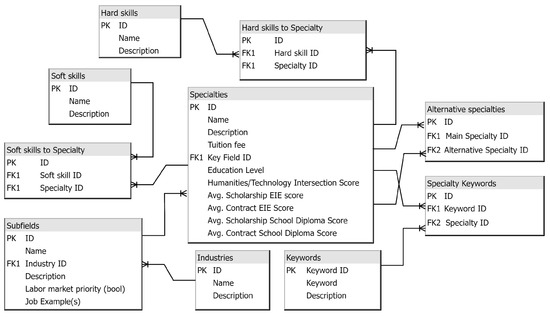 | Minimum/average/maximum scores in the current/latest educational institution (e.g., secondary school) on a national scale | Separate numerical values. For minimum and maximum scores would be good to provide subject names | Select the most relevant specialties following the success of education in primary school. It will also help determine how a specialty complexity level corresponds to the entrant’s knowledge level |