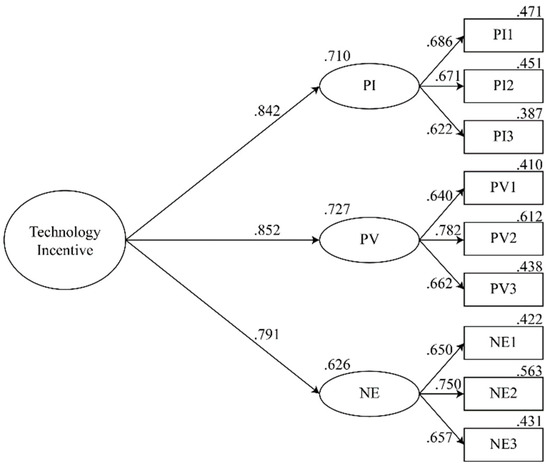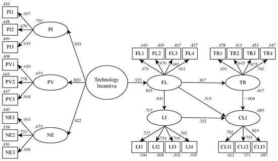 Studies have shown that users’ perceived interactivity, perceived vividness, and novel experience during interaction impacts immersion (Yim et al. 2017). The perception of interactive products is primarily influenced by these three factors, which can be considered new attributes of interactive technology (McLean and Wilson 2019). Hence, in the case of cutting-edge HCI products, a potential second-order construct may be added to these three. A second-order confirmatory factor analysis was used to validate this second-order model relationship. Interactive technology can positively influence students in the classroom and lead to positive perceptions, including a positive flow experience (Gu et al. 2022a). With interactive teaching tools or learning cases, students gain a different learning experience from traditional education. Therefore, we named this second-order construct technology incentive, and we proposed the following: