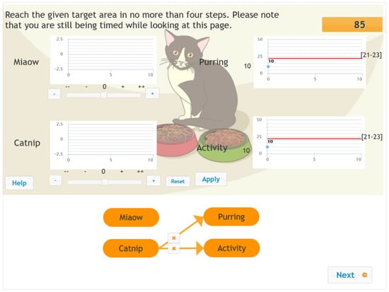 Screenshot of the MicroDYN item Cat—second phase (knowledge application). (The items were administered in Hungarian).