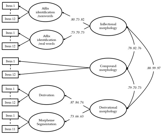 - Levesque, Kyle C., Michael G. Kieffer, and Hélène S. Deacon. 2017. Morphological awareness and reading comprehension: Examining mediating factors. Journal of Experimental Child Psychology 160: 1–20. [Google Scholar] [CrossRef]