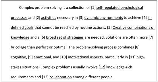 The notion of Complex Problem Solving (Dörner and Funke 2017) also has many features of a composite-formative model. This is evident when one considers how it is conceptually defined, as demonstrated in the excerpt from Dörner and Funke (2017, p. 6) in Figure 2. We highlight 13 distinct components that relate to the theory of complex problem solving. Whether these components have sufficient conceptual unity to be anything other than composite-formative is not a statistical question, but rather intrinsically a theoretical and empirical one. That is, the ontological status cannot be assumed.